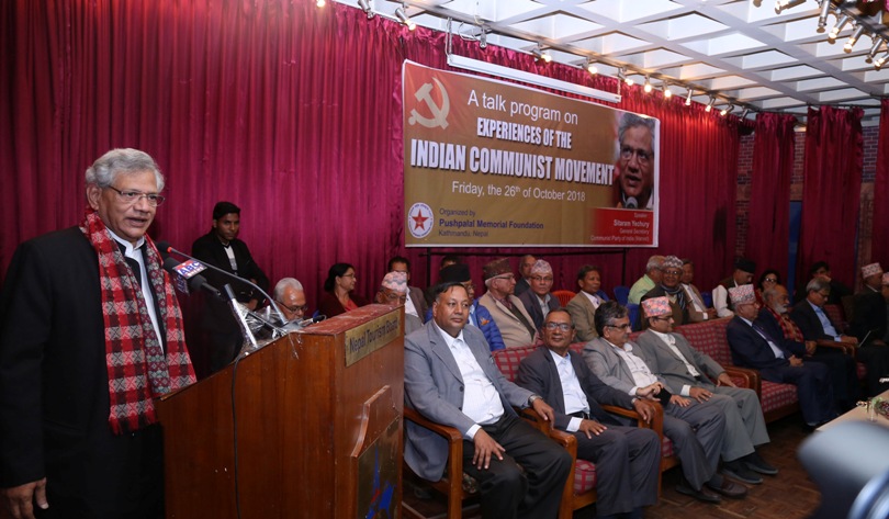 काठमाडौँ । भारतीय कम्युनिष्ट पार्टी माक्र्सवादीका महासचिव सीताराम येचुरीले लोकतान्त्रिक निर्वाचन प्रक्रियाबाट नेपालमा कम्युनिष्ट पार्टीको बहुमतको सरकार गठन भएबाट विश्वका कम्युनिष्टलाई प्रोत्साहन मिलेको बताएका छन् ।