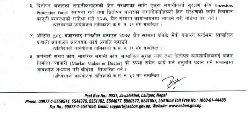 बोर्डले पुँजी बजारको विकासका लागि राष्ट्र बैंकका डेपुटी गभर्नर शिवराज श्रेष्ठको संयोजकत्वमा गठित कार्यदलले दिएको प्रतिवेदन कार्यान्वयन गर्न भन्दै नेप्सेलाई निर्देशन दिएको थियो ।