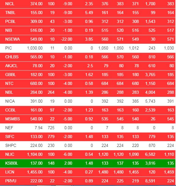 नौ वटा उप समूहको सेयर कारोबार भएको छ । जसमा सबै भन्दा बढी निर्जीबन बीमा समूहको ६४.७५ अंकले घटेको छ भने बैंकिङ समूहको ८.५५ अंकले घटेको छ ।