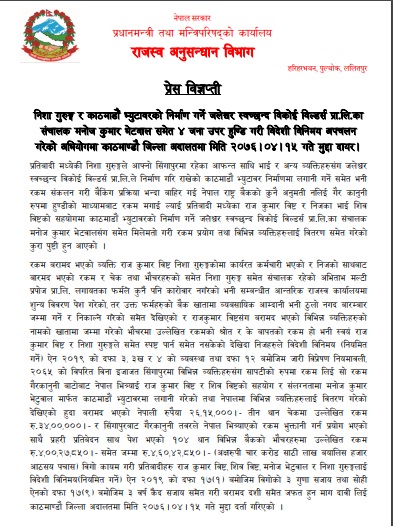काठमाडौं भ्यूटावर निर्माण गर्न लागेका भेटवाल हुण्डी कारोबार संलग्न, राजस्व अनुसन्धानले दायर गर्यो मुद्दा