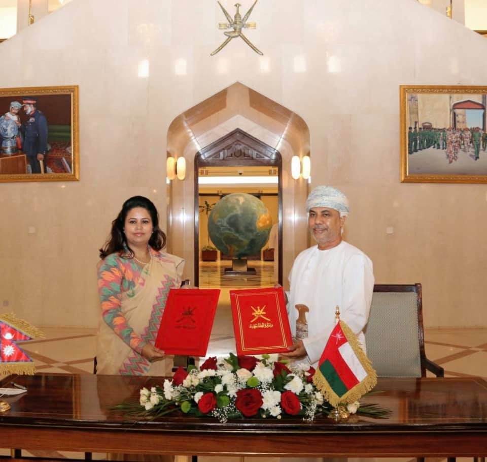 ओमानको तर्फबाट परराष्ट्र मन्त्रालयका सचिव (प्रशासन तथा लेखा) मोहम्मद विन नासिर विन मोहम्मद अल वहेबि र नेपाल सरकारको तर्फबाट ओमानका लागि नेपाली राजदूत सर्मिला पराजुली ढकालले उक्त सम्झौतामा हस्ताक्षर गरेको हो ।