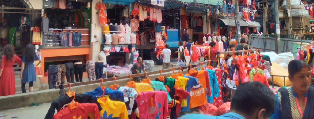 विगतको दिनमा बजारमा विभिन्न प्रकारका लत्ता, कपडा तथा जुत्ता आयात गरेर व्यवसायीलाई बिक्री गर्दै आएका न्यूरोडस्थित पुखुद्यां मार्गमा रहेका आरबी रेडिमेड सपका सञ्चालक दिनेश महर्जनले भने अहिले पसलमा मात्रै बिक्री गरिरहेको बताए ।