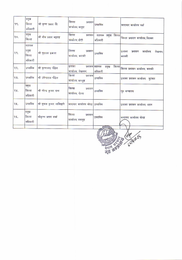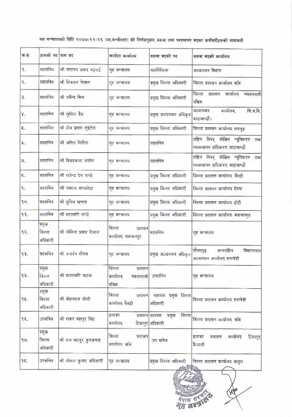 मन्त्रालयले सरुवा गरेको कर्मचारीहरुको सूचि
