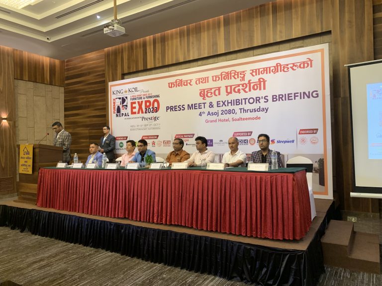 काठमाडौं । राजधानीको भृकुटीमण्डपमा नवौं संस्करणको फर्निचर एक्स्पो (फर्नेक्स २०२३) को आयोजना हुने भएको छ । बिहीबार राजधानीमा पत्रकार सम्मेलनको आयोजना गरी आयोजकले एक्स्पोको तयारी तिब्र पारिएको जानकारी दिएको हो । ‘के हामी आत्मनिर्भर छौं ?’ भन्ने मुख्य थिमसहित आयोजना हुने एक्स्पोको असोज १० गते दिउँसो १ बजे उद्योग वाणिज्य तथा अपुर्तीमन्त्री रमेश रिजालले उद्घाटन गर्नेछन् ।