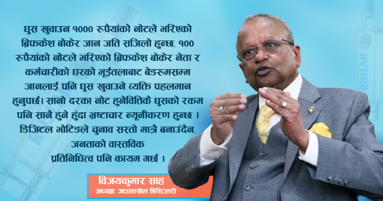 भ्रष्टाचार रोक्न ५०० र १००० का नोट बन्द गरौं, चुनावमा विद्युतीय मतदान गरौंः विजयकुमार साह