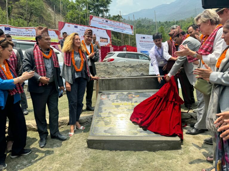 ऊर्जा जलस्रोत तथा सिंचाइमन्त्री शक्ति बहादुर बस्नेत र युरोपेली आयोगकी अन्तर्राष्ट्रिय साझेदारी उपमहानिर्देशक मिरियम फेरन, युरोपेली युनियन (इयु)की राजदूत भेरोनिक लोरेञ्जो, जर्मन राजदूत थोमस प्रिन्ज र युरोपेली लगानी बैंक (इआइबी)की निर्देशक थौउराया ट्रिकीले शुक्रबार संयुक्त रुपमा त्रिशूली-थ्री ‘बी’ हब र भाल्चे सबस्टेसन उद्घाटन गरेका छन् ।