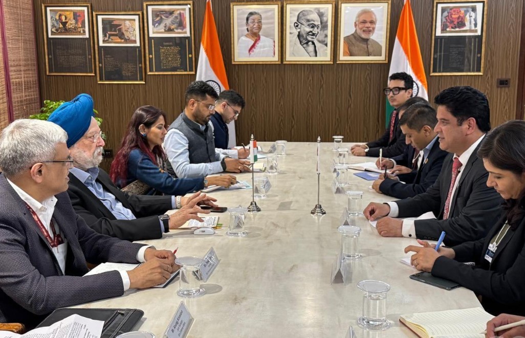 काठमाडौं । भारतको भ्रमणमा रहेका उद्योग, वाणिज्य तथा आपूर्तिमन्त्री दामोदर भण्डारी र उनका भारतीय समकक्षी पेट्रोलियम तथा प्राकृतिक ग्यासमन्त्री हरदिपसिंह पुरीबीच नयाँदिल्लीमा भेटवार्ता भएको छ ।