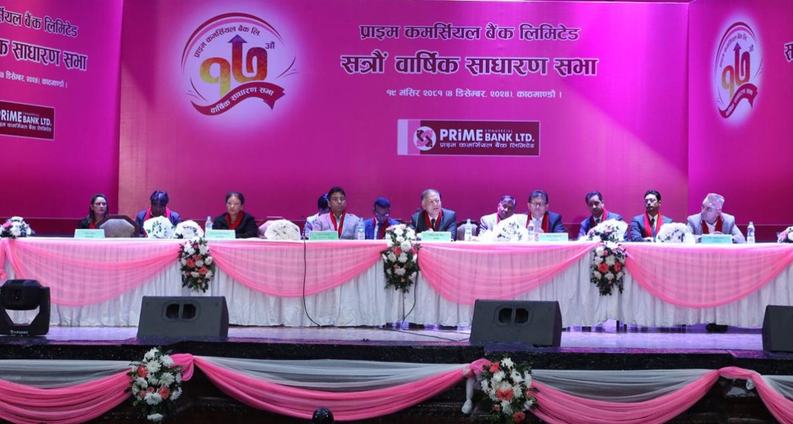 काठमाडौं । प्राइम कमर्सियल बैंकको सत्रौं वार्षिक साधारणसभाले चुक्ता पुँजीको ५ प्रतिशत नगद लाभांश दिने सञ्चालक समितिको प्रस्ताव अनुमोदन गरेको छ । बैंकको चुक्ता पुँजी १९ अर्ब ४० करोड २५ लाख ७५ हजार सात सय रुपयाँ रहेको छ ।