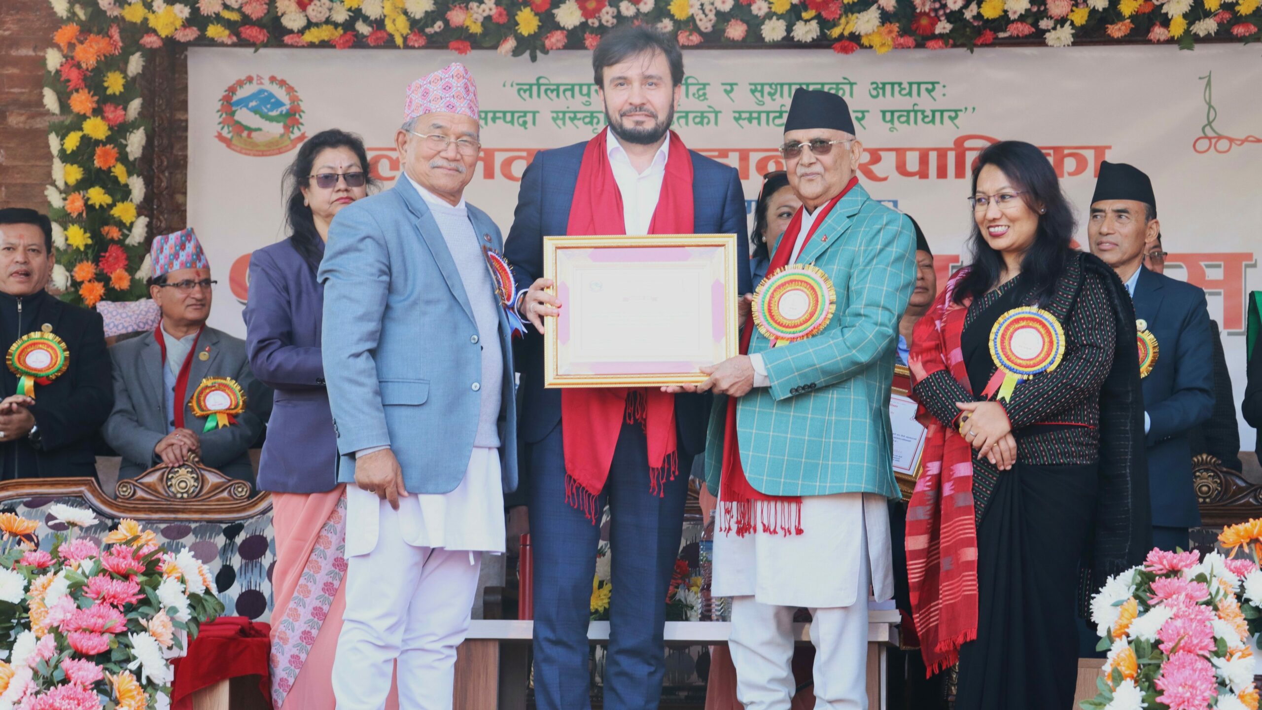 प्रधानमन्त्री केपी शर्मा ओली र ललितपुर महानगरपालिकाका मेयर चिरीबाबु महर्जनले संयुक्त रुपमा ललितपुर महानगरपालिकाको १०६औं स्थापना दिवसको अवसरमा आयोजित एक विषेश कार्यक्रममाझ एनसेलका प्रमुख कार्यकारी अधिकृत तथा प्रबन्ध निर्देशक जाब्बोर कायुमोभलाई उक्त सम्मान पत्र प्रदान गरेका थिए ।