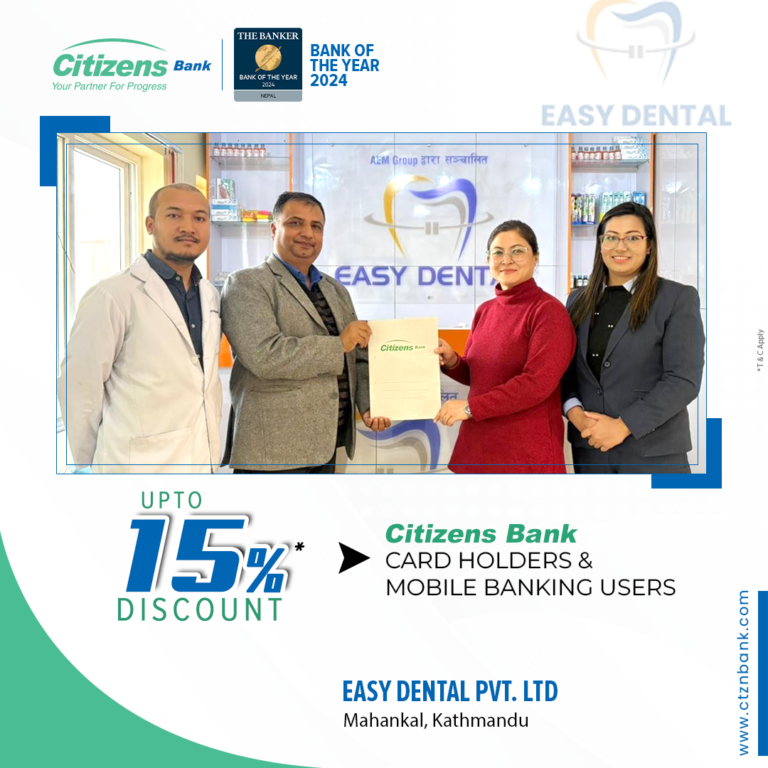 इजी डेन्टलमा सिटिजन्स बैंकका ग्राहकले विशेष छुट पाउने