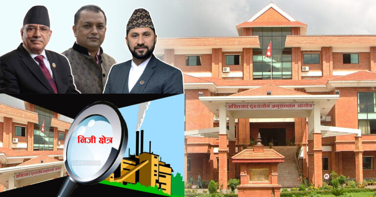 काठमाडौं । प्रतिनिधिसभाले निजी क्षेत्रमा अख्तियार प्रवेशलाई रोक्ने भएको छ । निजी क्षेत्रबाट सञ्चालन हुने पब्लिक कम्पनीलाई सार्वजनिक संस्था मानी अख्तियारले अनुसन्धान गर्न नहुने पक्षमा संघीय संसदको तल्लो सभाअन्तर्गतको राज्य व्यवस्था तथा सुशासन समिति उभिएको हो । समितिले संसदमा विचाराधीन रहेको अख्तियार दुरुपयोग अनुसन्धान आयोग ऐन, २०४८ को दोस्रो संशोधन विधेयकका विषयमा अध्ययन गर्न सांसद … Continue reading प्रचण्ड-गगन-रवि रहेको समितिमा जुट्यो सहमति: निजी क्षेत्रमा अख्तियार नपस्ने, भ्रष्टाचारको हदम्याद नहुने