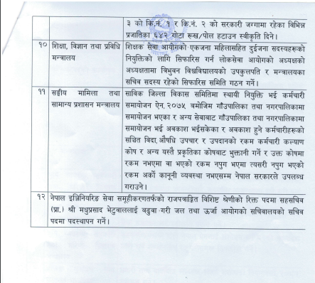 भौतिक पूर्वाधार सुधारका लागि सरकारले रेल सञ्चालन, मर्मत सम्भार, र उपकरण खरिदमा सैद्धान्तिक सहमति दिएको छ । यससँगै, राष्ट्रिय खेलकुद परिषद्मा आठ नयाँ सदस्य नियुक्ति गरिएको छ ।