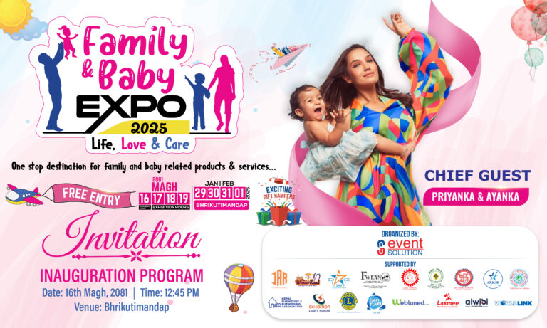 माघ १६ गतेदेखि इभेण्ट सोलुसन प्रालिको आयोजनामा राजधानीको भृकुटीमण्डपमा ‘फेमिली एण्ड बेबी एक्स्पो २०२५’ आयोजना हुन लागेको हो ।