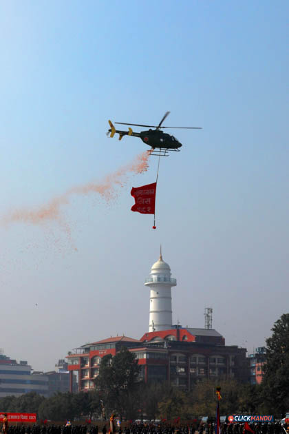 सोही अवसरमा नेपाली सेनाको हेलिकोप्टरबाट राष्ट्रिय प्रजातन्त्र दिवस, २०८१ अङ्कित ब्यानर प्रदर्शन गरी पुष्पवृष्टि एवं रङ्गीचङ्गी बेलुनहरू उडाइएको थियो । समारोहमा नेपाली सेना, नेपाल प्रहरी, सशस्त्र प्रहरी बल नेपाल र नेपाल स्काउटद्वारा ‘मार्चपास’ र ‘ब्याण्ड’ प्रस्तुत गरिएको थियो ।