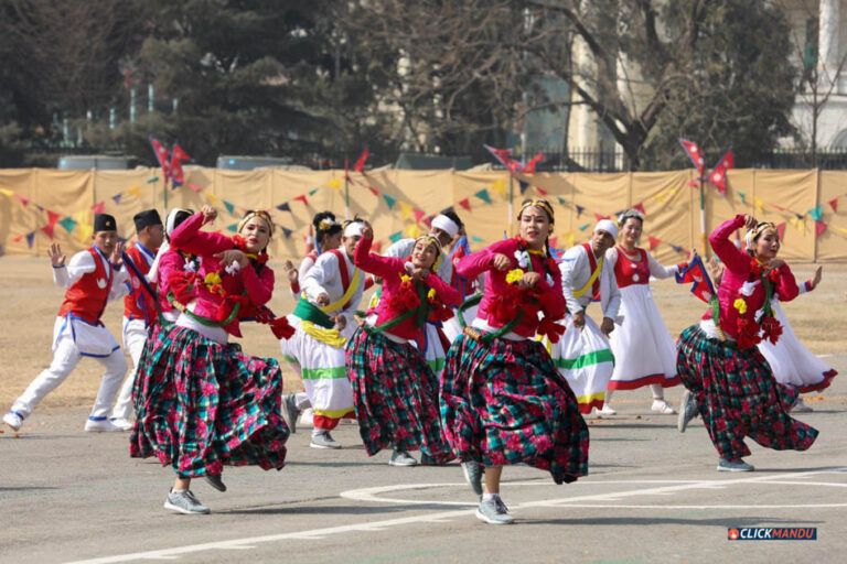 कार्यक्तममा विभिन्न झाकी प्रस्तुतगरीएको थियो भने नेपाल प्रहरी, नेपाली सेना र शसस्त्र प्रहरीद्धारा विभिन्न मार्च पास परेड तथा नृत्य प्रस्तुत गरेका थिए । समारोहमा उपत्यकाका विभिन्न नगरपालिकाका तर्फबाट सांस्कृति झाँकी तथा लाखे नाच, तेक्वान्दो खेल प्रस्तुत गरिएको थियो ।