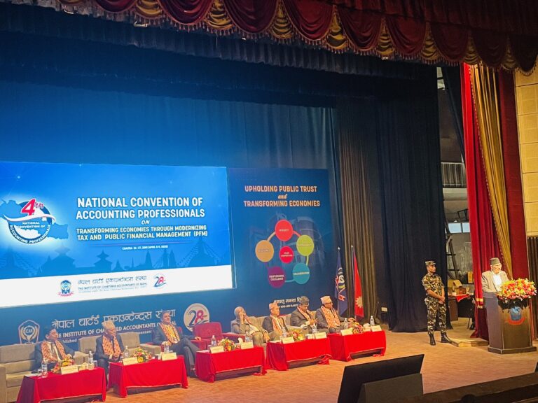 काठमाडौं । ‘कर र सार्वजनिक वित्तीय व्यवस्थापनको आधुनिकीकरणमार्फत अर्थतन्त्रको रूपान्तरण’ भन्ने नाराका साथ लेखा व्यवसायीको चौंथो राष्ट्रिय सम्मेलन मंगलबारदेखि काठमाडौंमा सुरु भएको छ ।