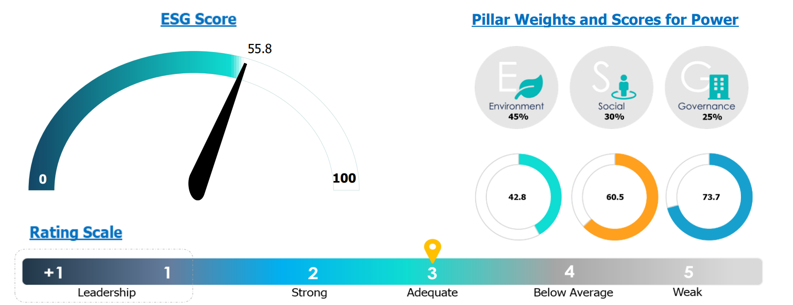 कम्पनीले ५५.८ ईएसजी स्कोरसहित ‘केयरएज–ईएसजी ३’ को रेटिङ पाएको छ । भारतको उर्जा क्षेत्रका कम्पनीहरुमा भएको पहिलो ईएसजी मूल्यांकन हो ।