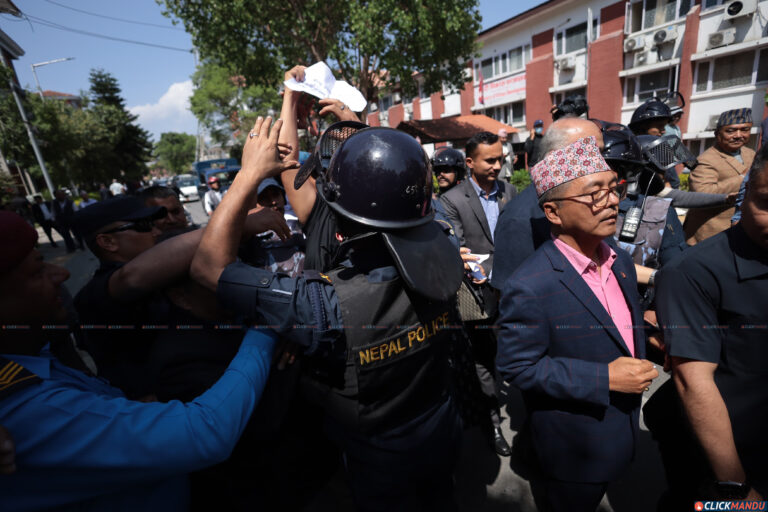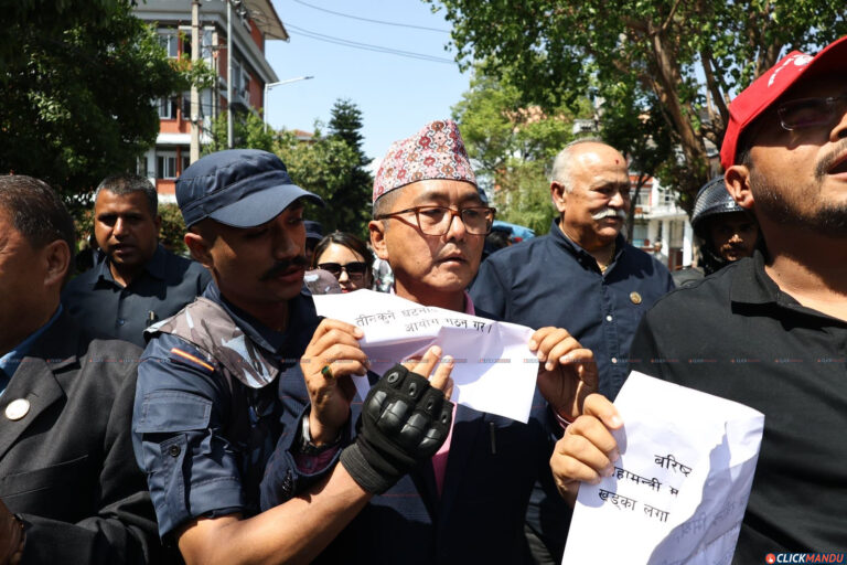 आइतबार निषेधित क्षेत्र तोड्नेभन्दै राप्रपाले प्रदर्शन गरिरहेको छ । प्रदर्शन जारी रहँदा सिंहदरबारस्थित पार्टी संसदीय दलको कार्यलयमा बैठक बसेका उनीहरुलाई प्रहरीले बाहिर निस्कन रोकेको आरोप छ ।
