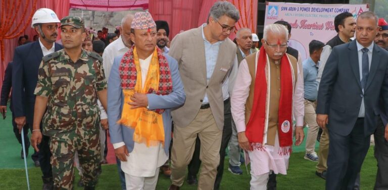 काठमाडौं । ऊर्जा, जलस्रोत तथा सिँचाइमन्त्री दीपक खड्का र भारतका विद्युत्, आवास तथा शहरी मामिलामन्त्री मनोहरलाल खट्टरले अरुण तेस्रो जलविद्युत् आयोजनाको स्थलगत अवलोकन गरेका छन् ।