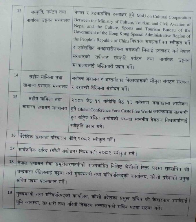 त्यस्तै सार्वजनिक खरिद चौधौं संशोधन नियमावली-२०८२ लाख स्वीकृत गर्ने निर्णय गरेको छ ।