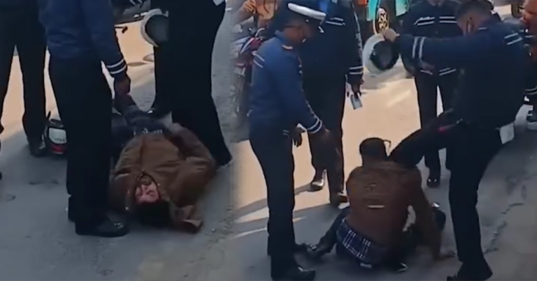 काठमाडौं । सामाजिक सञ्जालमा ट्राफिक प्रहरीले एक व्यक्तिलाई निर्घाट कुटपिट गरेको भिडिओ सार्वजनिक भएको छ । बुधबार बिहानदेखि समाजिक सञ्चालमा चर्चामा रहेको भिडियोमा चार जना ट्राफिक प्रहरी देखिन्छन् जसमध्ये एक ट्राफिकले एक व्यक्तिलाई बुटले किक हानेर ढालेको देखिन्छ ।