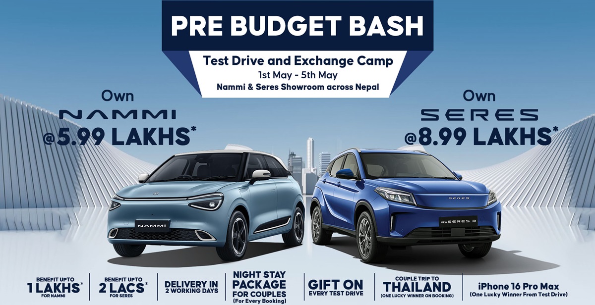 काठमाडौं । नेपालको प्रमुख इलेक्ट्रिक गाडी ब्रान्डहरू डोङफेङ र सेरेसले देशभर नै चासोका साथ हेरिएको ‘प्रि बजेट ब्याश’ अफर ल्याएका छन्।