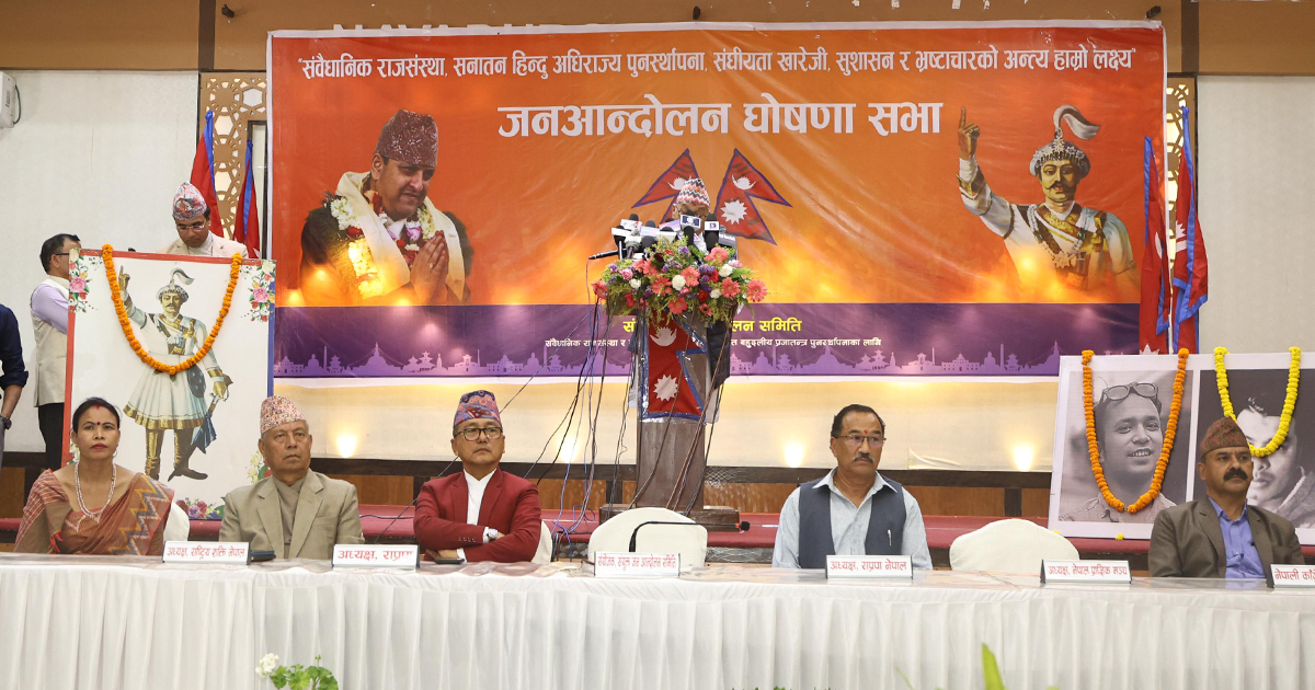 काठमाडौं । राजतन्त्रवादी समूहले आगामी जेठ १५ गतेदेखि देशव्यापी आन्दोलनको घोषणा गरेको छ । उनीहरुले गणतन्त्र दिवसका दिन देशमा राजतन्त्र फर्काउने आन्दोलन घोषणा गरेका हुन् ।