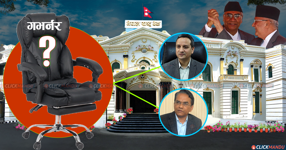‘भटट्को विकल्पमा पौडेलको नाम प्रस्ताव गरिएको हो । सरकारले भट्टको राजीनामा स्वीकृत गरेर उनलाई नै गभर्नर बनाउने वा सिफारिस समिति पुनर्गठन गरेर पौडेलालाई नियुक्त गर्ने विकल्पमा काम गर्नेछ,’ स्रोतले क्लिकमान्डुसँग भन्यो । कांग्रेसले सत्ताका प्रमुख घटक एमालेसँग कांग्रेसको सिफारिसमा गभर्नर नियुक्त हुने सहमति भएअनुसार विकल्पमा पौडेलको पनि नाम सिफारिस गरेको भन्दै यही साता गभर्नर नियुक्त हुने विश्वासमा रहेको कांग्रेसका एक पदाधिकारीले बताए ।