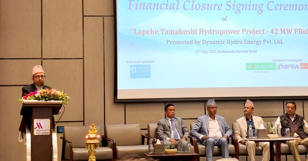 एनएमबि बैंकका चिफ, सस्टेनेबल ईनर्जी बैंकिङ्ग दिनेश दुलाल तथा डायनामिक हाइड्रो ईनर्जी प्रालिको तर्फबाट अध्यक्ष मोहन बिक्रम कार्कीले ऋण सम्झौता पत्रमा हस्ताक्षर गरे ।