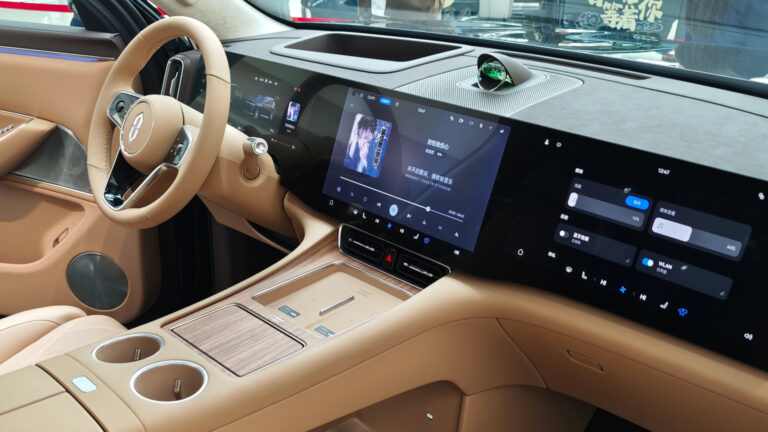 अइटो एम ८ को क्याबिनमा दुई प्रकारको सिट व्यवस्था छ ए २ +२+२ र ए २+३। यसमा ७५ इन्चको हुवावेको अगमेन्टेड हेड अप डिस्प्ले र ठूलो तीनवटा स्क्रिन सेटअप छ ।