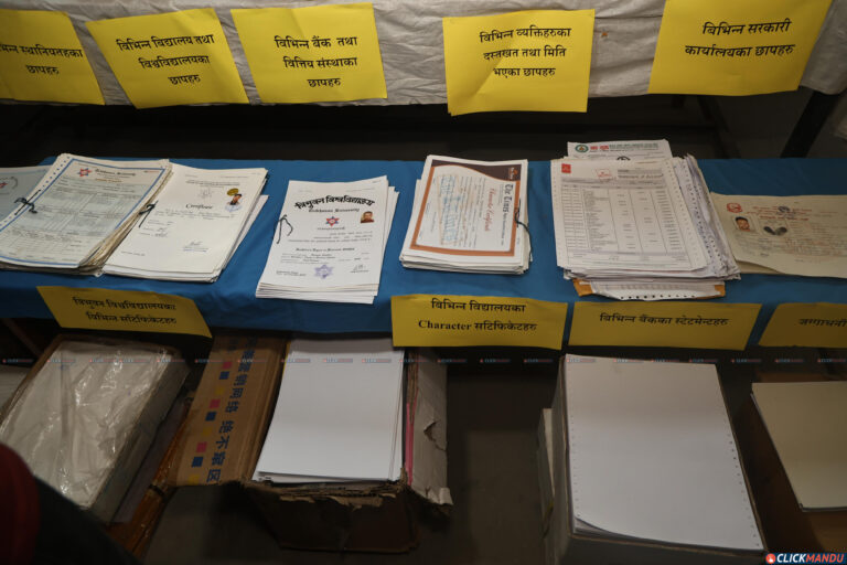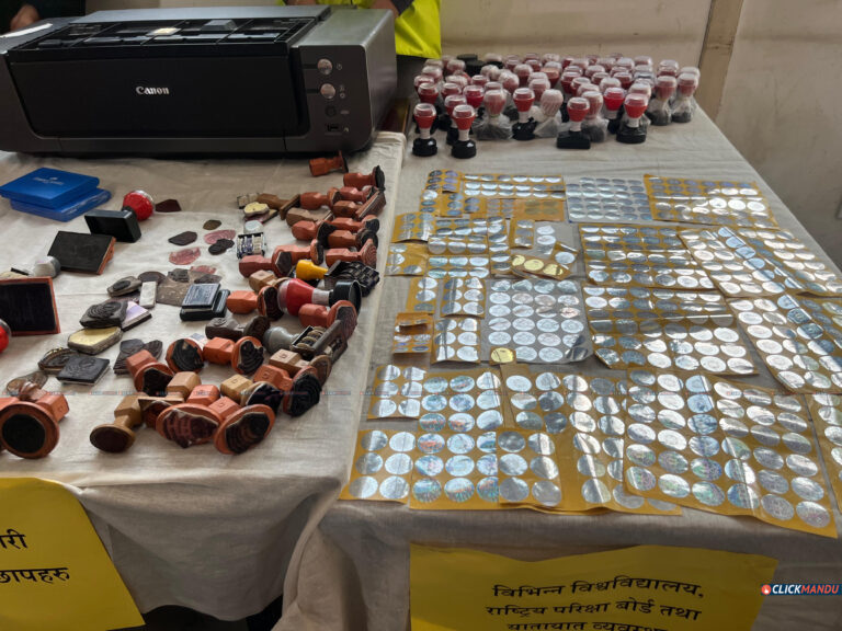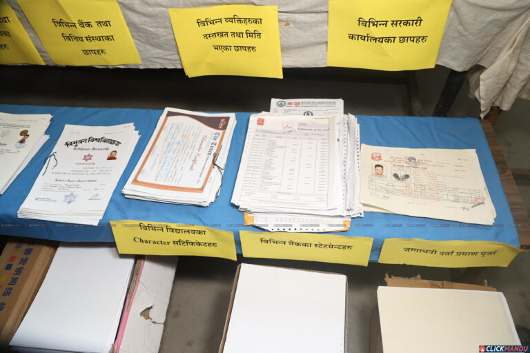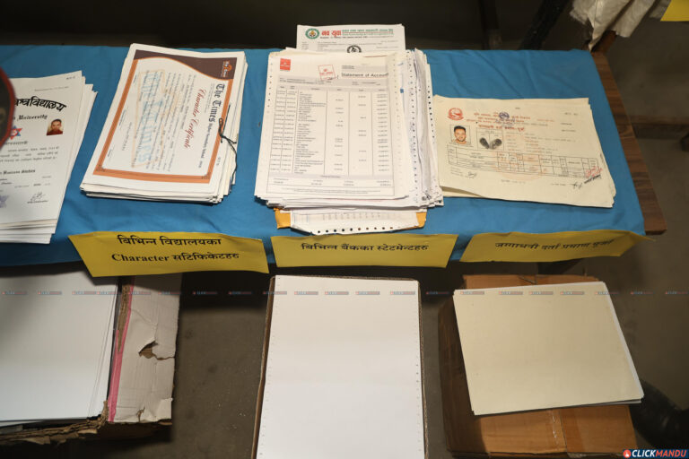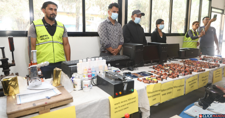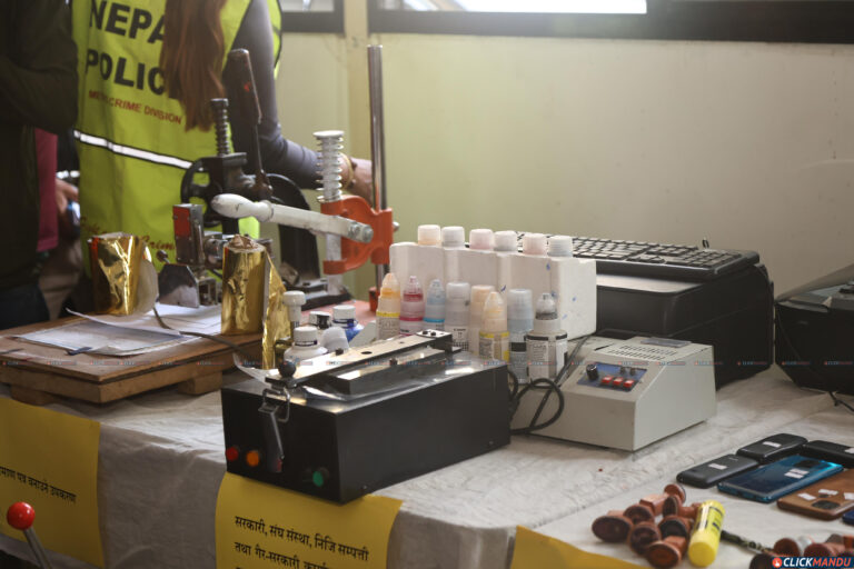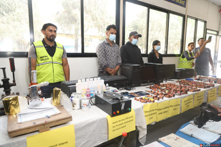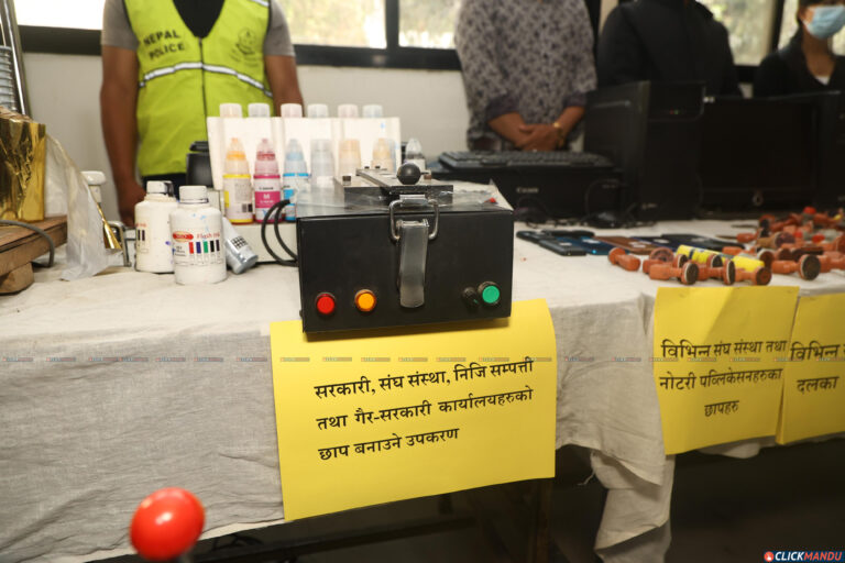 काठमाडौं उपत्यका अपराध अनुसन्धान कार्यालयले बिहीवार पत्रकार सम्मेलन गर्दै उनीहरूलाई सार्वजनिक गरेको हो । काठमाडौंको तारकेश्वर नगरपालिका– ७ फुटुङ्मा विभिन्न सरकारी कार्यालय, स्थानीय तह, बैंक तथा वित्तीय संस्था र शैक्षिक प्रमाणपत्र लगायतका कागजात किर्ते गरी नक्कली बनाउने गरेको सूचना प्राप्त गरेपछि प्रहरीले छापा मारेको थियो ।