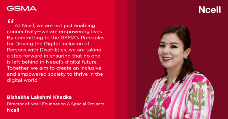 “हामीले केवल सम्पर्क स्थापित गर्ने कनेक्टिभिटी सेवा मात्र उपलब्ध गराइरहेका छैनौं, हामी मानिसहरुलाई सशक्त बनाइरहेका छौं । जीएसएमएसँग अपाङ्गता भएका व्यक्तिहरूको डिजिटल समावेशीकरण प्रवद्र्धन गर्ने यी सिद्धान्तहरूमार्फत हामी नेपालको डिजिटल भविष्यमा कोही पनि पछि नपरोस् भन्ने सुनिश्चित गर्न महत्वपूर्ण कदम अगाडि बढिइरहेका छौं। हातेमालो गर्दै, हामीले डिजिटल दुनियामा सफल हुने समावेशी र सशक्त समाज निर्माण गर्ने लक्ष्य राखेका छौं।” एनसेलकी एनसेल फाउन्डेसन एन्ड स्पेशल प्रोजेक्ट डाइरेक्टर विशाखा लक्ष्मी खड्काले भनिन् ।