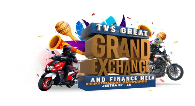 जेठ ७ देखि १२ गतेसम्म काठमाडौंको ‘भृकुटीमण्डप’ स्थित प्रदर्शनी स्थलमा आयोजना गरिने मेलामा पुराना मोटरसाइकल वा स्कुटरहरू साटेर नयाँ टिभीएस सवारीहरू घर लैजान सकिने व्यवस्था मिलाइएको कम्पनीले जनाएको छ । यस विशेष अवसरमा विभिन्न आकर्षक अफरहरू र मनोरञ्जनात्मक कार्यक्रमहरूको मजा लिन सकिने कम्पनीको भनाइ छ।