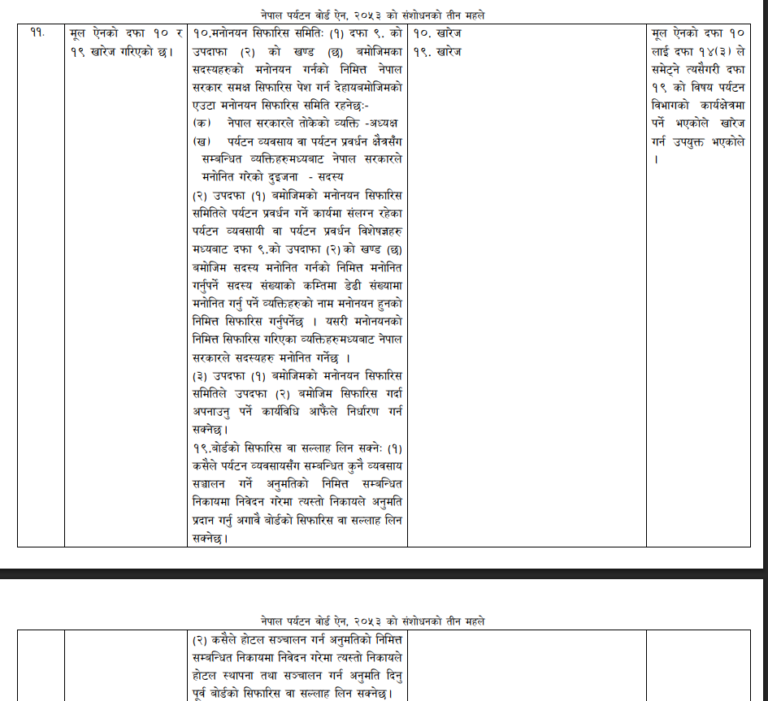 ऐनको दफा १० मा बोर्ड सदस्य मनोनय गर्न तीन जनाको सिफारिस समिति बनाउने उल्लेख छ । निजी क्षेत्रका तीन जना प्रतिनिधिको एक समितिले बोर्ड सदस्य मनोनयनका लागि नाम सिफारिस गर्ने व्यवस्था छ । यो व्यवस्थालाई खारेज गरेर सिधै पर्यटन मन्त्रीले नियुक्त गर्ने व्यवस्था गर्ने गरी ऐन संशोधनको मस्यौदा तयार पारिएको छ ।