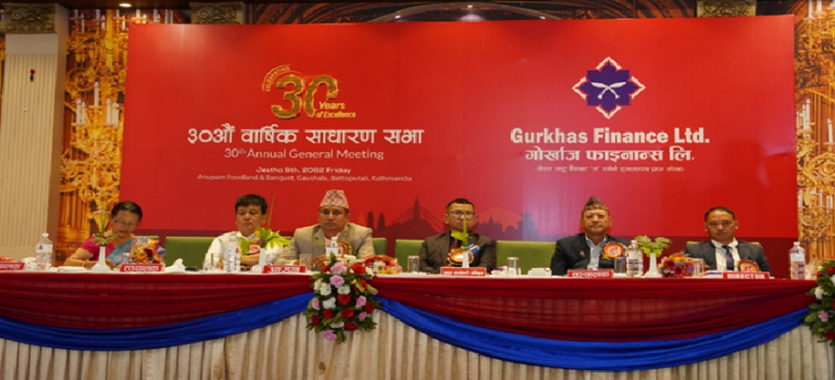 काठमाडौं । गोर्खाज फाइनान्स लिमिटेडको तीसौं वार्षिक साधारण सभा सम्पन्न भएको छ ।