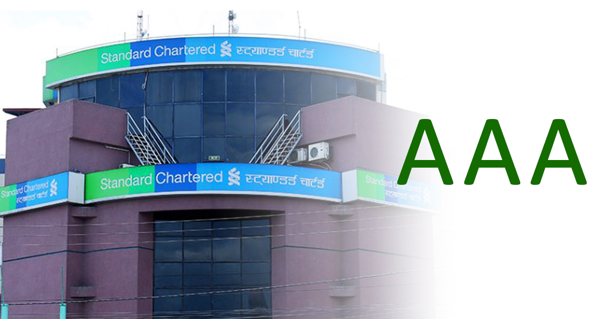 काठमाडौं । स्ट्यान्डर्ड चार्टर्ड बैंक नेपालले छैटौंपटक ट्रिपल ए रेटिङ पाएको छ । क्रेडिट एजेन्सी इक्राले यो रेटिङ पुनः पुष्टी गरेको हो ।