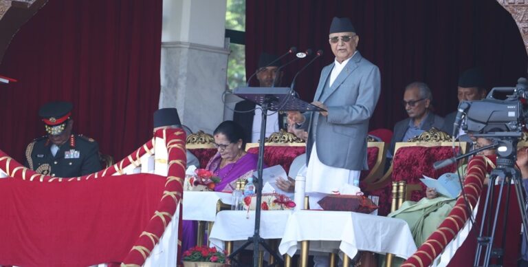 गणतन्त्र दिवसका २०८२ को उपलक्ष्यमा टुडिँखेलमा ओयोजित विशेष समाराहलाई सम्बोधन गर्दै प्रधानमन्त्री ओलीले हरेक नागरिकको आत्मससम्मान सुरक्षित रहने गणतन्त्रान्त्रिक व्यवस्थाको विकल्प अरु हुननसक्ने बताए ।