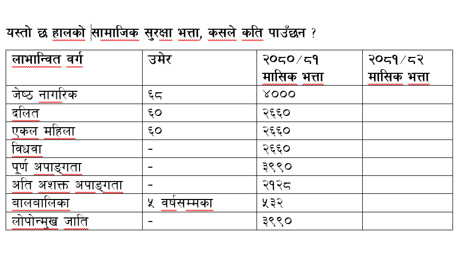 बृद्धभत्ताको विषयमा सरकार मौन, हालको भत्ता आगामी वर्षलाई निरन्तर