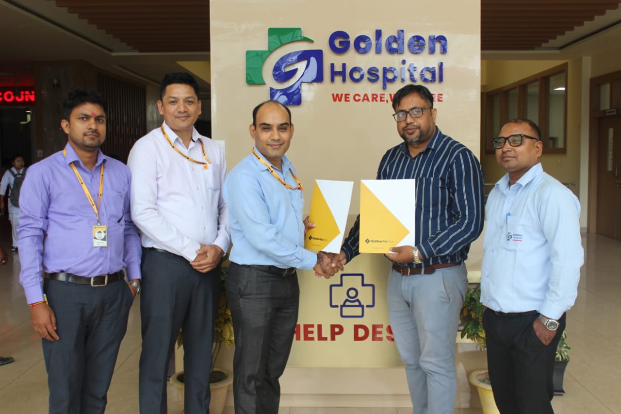 विराटनगरमा सम्पन्न एक विशेष समारोहमा गोल्डेन हस्पिटल प्राइभेट लिमिटेड (दर्ता कार्यालय जनपथ टोल–११, विराटनगर)का प्रमुख कार्यकारी अधिकृत जियाउल हक र सिद्धार्थ बैंक लिमिटेड (केन्द्रीय कार्यालय नक्साल, काठमाडौं) का विराटनगर शाखा प्रबन्धक सूर्यप्रसाद शर्माबीच सम्झौतापत्रमा हस्ताक्षर गरिएको हो ।