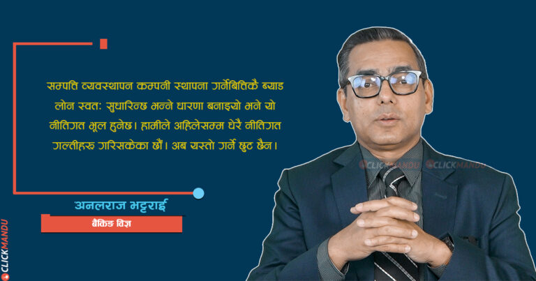 अर्थतन्त्र र बैंकिङ क्षेत्रमा बेलाबेला दबाब आइरहन्छ । सन् १९९५ तिर पनि एक प्रकारको दबाब थियो । त्यसबेला सम्पत्ति व्यवस्थापन कम्पनीको कुरा आएको थियो । सम्पत्ति व्यवस्थापन कम्पनीबारे अध्ययन गर्न राष्ट्र बैंक र नेपाल सरकारका प्रतिनिधिहरू मलेसिया पुगेका थिए । त्यसपछि नेपालको बैंकिङ क्षेत्रमा धेरै सुधार भए । समय परिवर्तन हुँदै गयो । नेपालको राजनीतिदेखि … Continue reading ब्याड बैंक: बैकिङ क्षेत्र सुधारको ढोका कि अर्को भ्रम ?