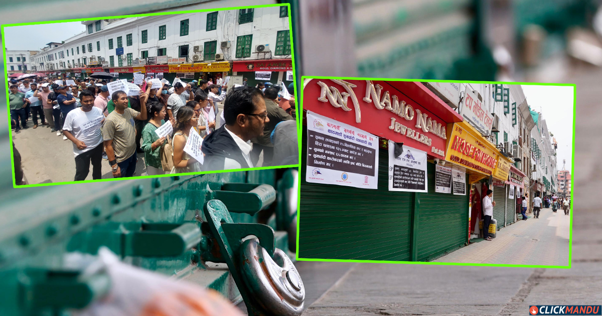 व्यवसायीहरुले बिहीबार न्यूरोडस्थित सुन चाँदी पसलहरु बन्द गरेर बिरोध जनाएका छन् ।