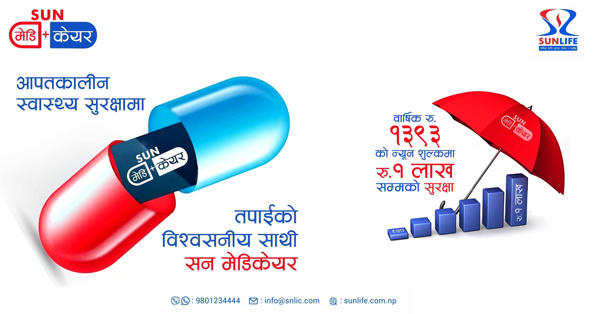 धेरै वटा बिमा कम्पनीहरुले धेरै किसिमका बिमा योजनाहरु बजारमा सञ्चालन गरिरहेको बेलामा नागरिकहरुलाई कुन बिमा योजना कस्तो हो भन्ने किसिमका जिज्ञासा रहने गरेको छ । त्यस्तै समयमा सन नेपाल लाइफले सन मेडिकेयर एउटा नवीन बिमा सुविधा रहेको र त्यसले आकस्मिक स्वास्थ्य समस्याबाट हुने खर्चको तत्काल राहत प्रदान गर्ने जनाएको हो ।