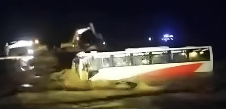 ‘नयाँ डाइभर्सनबाट आउँदै गर्दा बाढीले बस बगाएको हो’, प्रहरी निरीक्षक तिमिल्सेनाले भने, ‘तत्काल एक्साभेटर लगेर सबै यात्रुको सकुशल उद्धार गर्न सफल भयौँ ।’