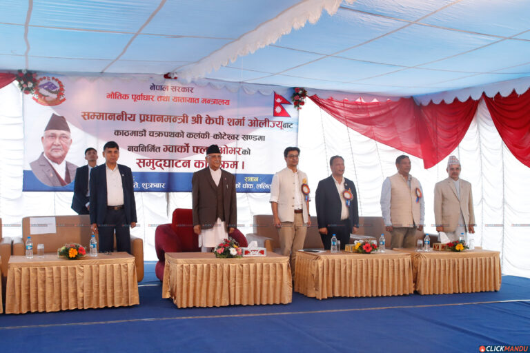 काठमाडौं । ललितपुरको ग्वार्कोमा निर्माण भएको ओभरपास शुक्रबार प्रधानमन्त्री केपी ओलीले उपत्यका ट्राफिक प्रहरी प्रमुख नवराज अधिकारीबाट उद्घाटन गरेका छन् । उद्घाटन भएसँगै ओभरपासमा सवारीसाधन सञ्चालनमा आएका छन् ।