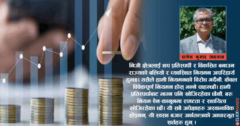 (नेपाल उद्योग परिसंघका अध्यक्ष अग्रवालको प्रस्तुत लेख क्लिकमान्डुको विशेष प्रकाशन ‘मौद्रिक सुशासन’ मा प्रकाशित छ । मौद्रिक सुशासनमा प्रकाशित सम्पूर्ण सामाग्री यो लिंकमा पढ्न सकिन्छ ।)