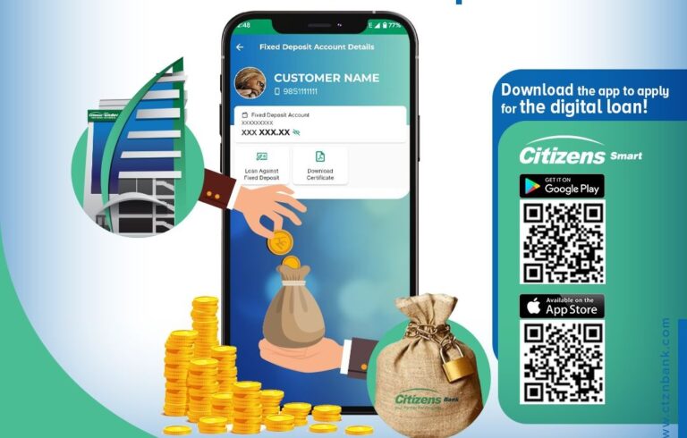काठमाडौं । सिटिजन्स बैंकले मुद्दती निक्षेप धितोमा अनलाइन माध्यमबाट नै कर्जा लिन सक्ने सुविधा ल्याएको छ ।