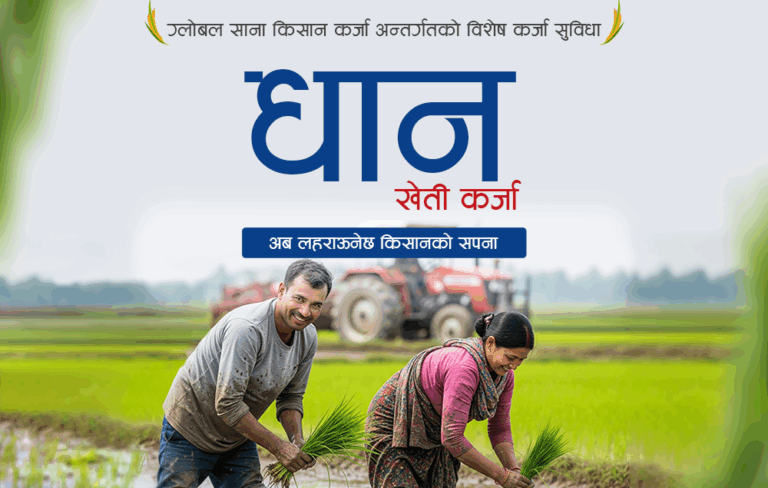 नेपाल सरकारको आर्थिक वर्ष २०८२/८३ को बजेट बक्तव्यमा मुलुकलाई आगामी २ वर्षमा धानमा आत्मनिर्भर बनाउन लिएको रणनीतिलाई सहयोग पुर्याउने उद्देश्यले बैंकले धान खेती कर्जा सार्वजनिक गरेको बैंकले जनाएको छ ।