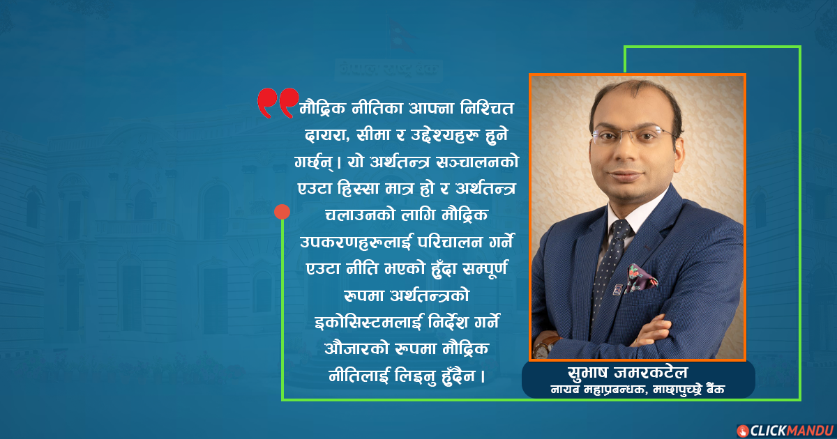 आज मैले चर्चा गर्न चाहेको विषय पछिल्ला मौद्रिक नीतिहरूको व्यवस्था र त्यसले नेपालको अर्थतन्त्रमा पारेको सकारात्मक प्रभावको सन्दर्भमा रहेको छ । खासगरी कोभिड पछाडिका चार वर्षमा आएका मौद्रिक नीतिहरूले गरेका व्यवस्थाहरू अलि विशेष, महत्वपूर्ण र प्रभावकारी रहेको देखिन्छ ।