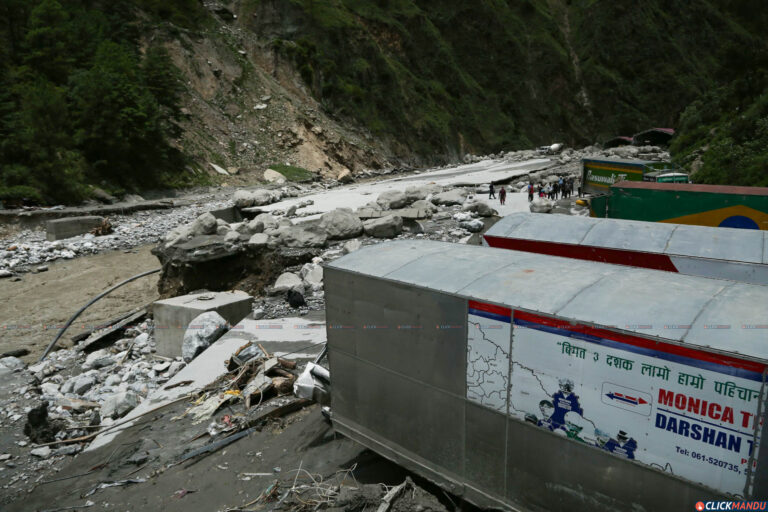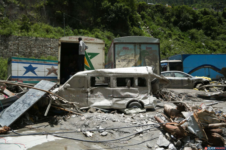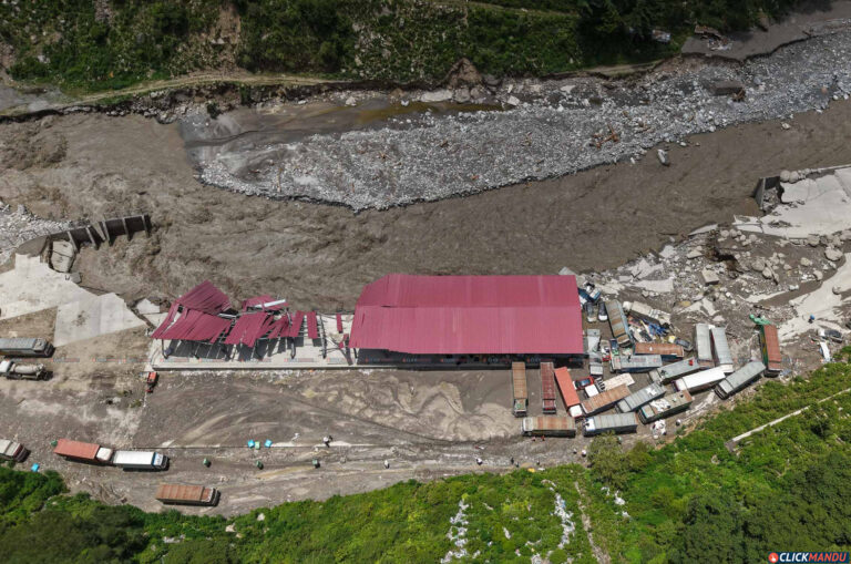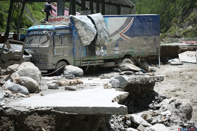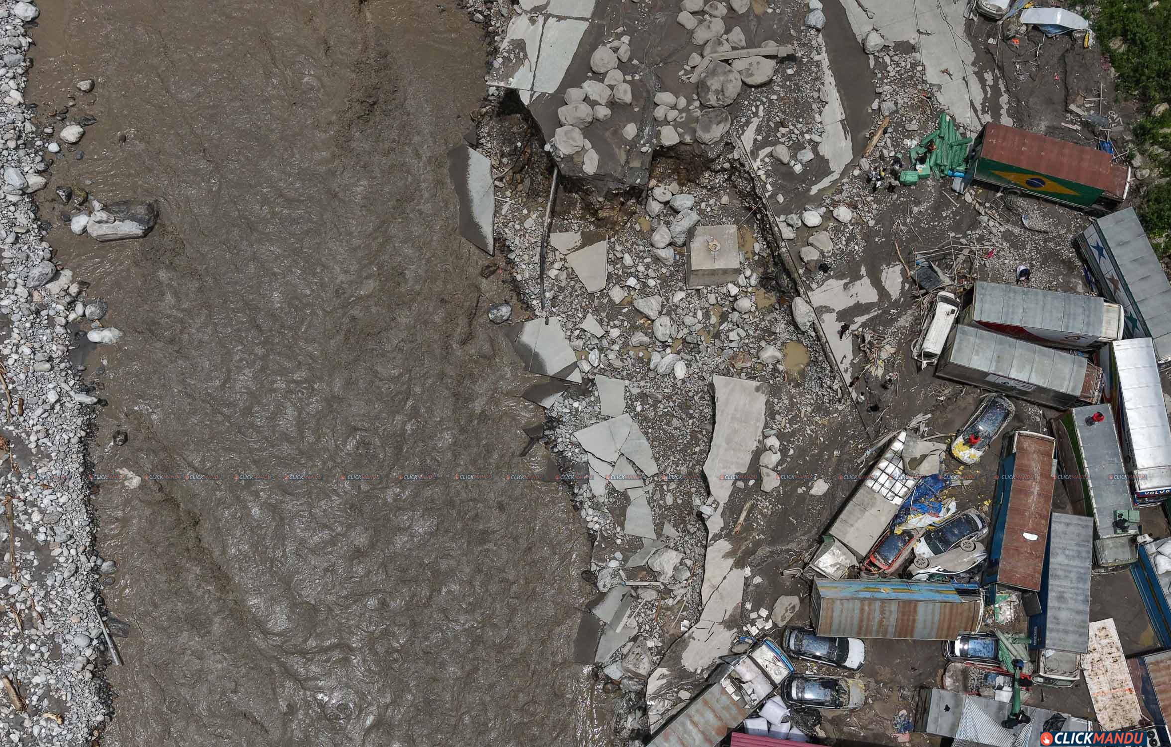 बाढीले नेपाल चीन जोड्ने मितेरी पुल बगाएको छ भने धेरै स्थानमा सडक, बिजुली लगायत अवरुद्ध भएको छ ।