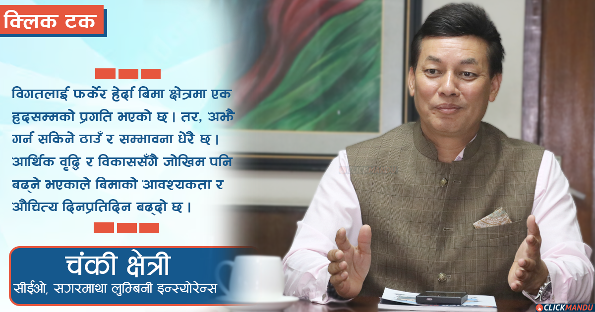 यसै सन्दर्भमा मुलुकको वर्तमान बिमा अवस्था, समस्या, राज्यले लिनुपर्ने नीति र बिमा कम्पनीले समात्नुपर्ने बाटोको विषयमा केन्द्रित रहेर क्लिकमान्डुका पदम भुजेलले क्षेत्रीसँग गरेको कुराकानी:
